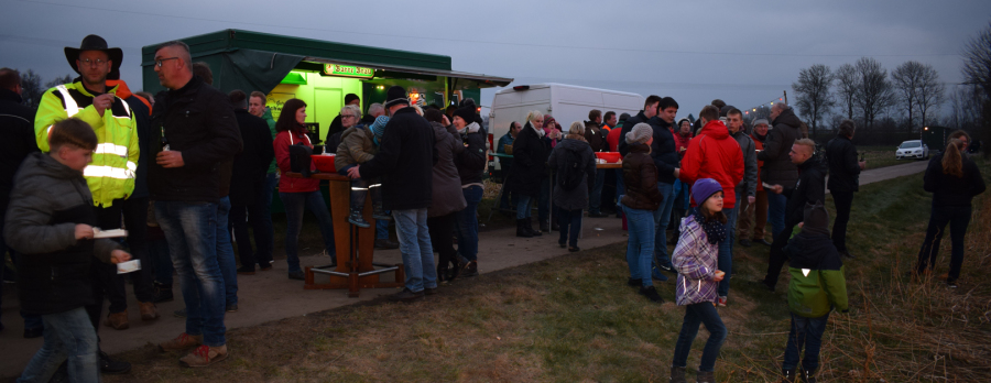 Bei vielen verschiedenen Heißgetränken wie dem Rüdesheimer Kaffee, der traditionellen Feuerzangenbowle, dem Glühwein und dem Kakao musste keiner frieren. Für das leibliche Wohl sorgte der „Dorfschlachter“ mit Stippgrütze und diversen Grillvariationen, sowie selbstgebackenen Keksen von den Landfrauen. Fehlen durfte natürlich auch nicht der Flammlachs, der frisch über einer Feuerschale zubereitet wurde. Mit Stockbrot und anderen Attraktionen wurde auch an die kleinen Gäste gedacht. Der Höhepunkt für die Kinder war natürlich der Besuch des Weihnachtsmannes, der alle Kinder mit Süßigkeiten versorgte. Die Erwachsenen hielten sich derweil an den vielen Buden oder im beheizten Zelt auf. Höhepunkt war wieder einmal die bekannte Tombola, wo viele großartige Preise gewonnen werden konnten.