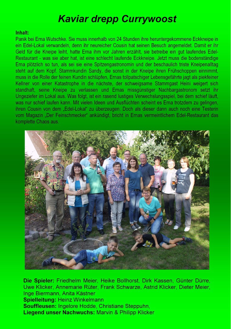 Ausflug am Vatertag zusammen mit den Freunden der „Gemütlichkeit“ unternommen und das Stück der „Espelkämper Laienspielbühne“ sei der feste kulturelle Höhepunkt im Kalender der „Eskarianer“. Als